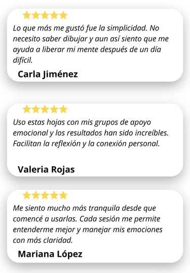 Los ejercicios transforman emociones en arte, claridad y bienestar, haciendo que tus sesiones sean más significativas, más profundas y mucho más efectivas.